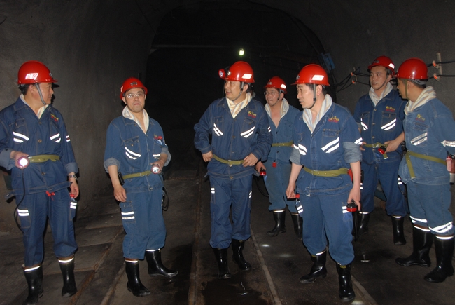 在副矿长蒋立宪(主持工作)等领导班子成员及相关部室负责人的陪同下,虢洪增一行直接来到1302工作面进行检查。在现场,虢洪增就1302工作面的开采进度、可采储量、设备运行、煤种煤质、冲击地压、生产接续、物料损耗等方面情况进行了详细了解,并与一线职工进行了亲切交谈,询问了他们的福利待遇、假期薪酬、投保状况、劳动强度等方面情况,为他们付出的辛苦努力致以了敬意和感谢。检查期间,董事长虢洪增、副总经理郝敬尧还从现场管理、安全措施、规章制度、开拓布局、节能减排等方面与蒋立宪进行了交流,强调了遵章作业、安全生产的重要性,明确了保安全、抓效益、促发展的经营目标,要求健全科学合理的制度体系、确定切实可行的战略方针,以谋矿井长治久安、和谐发展。